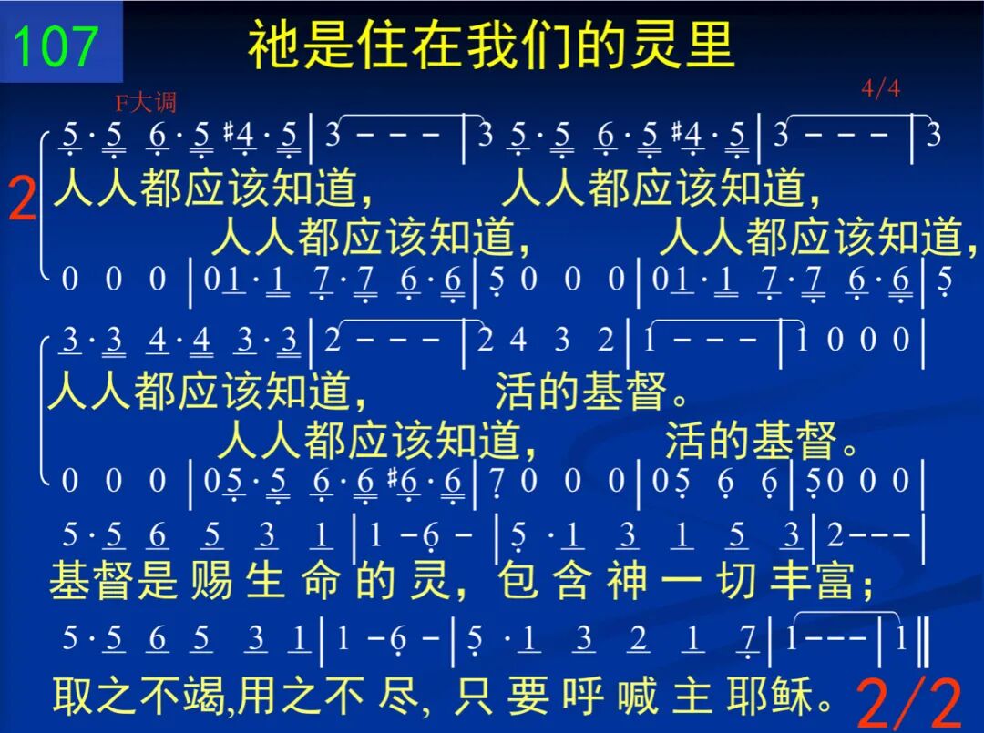 人人都应该知道,人人都应该知道,人人都应该知道,主住那里?祂是住在我们灵里,作我们生命、气息;我们与祂联合为一,这是何等的奥秘! 二 人人都应该知道,人人都应该知道,人人都应该知道,活的基督。基督是赐生命的灵,包含神一切丰富;取之不竭,用之不尽,只要呼喊主耶稣。