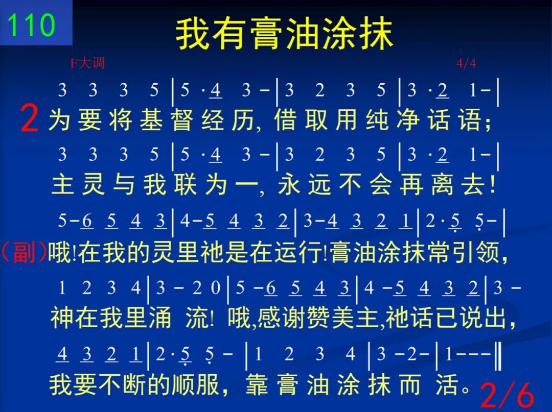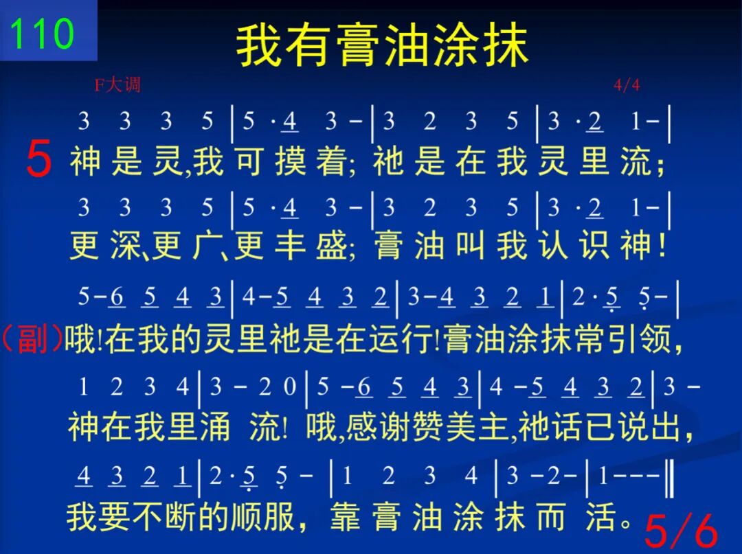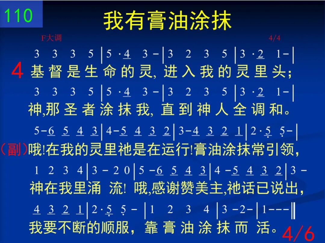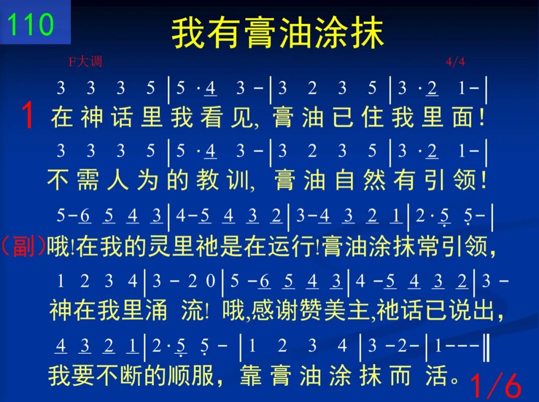 在神话里我看见,膏油已住在我里面!不需人为的教训,膏油自然有引领! 哦!在我的灵里祂是在运行!膏油涂抹常引领,神在我里涌流!哦,感谢赞美主,祂话已说出,我要不断的顺服,靠膏油涂抹而活。 二 为要将基督经历,藉取用纯净话语;主灵与我联为一,永远不会再离去! 哦!在我的灵里祂是在运行!膏油涂抹常引领,神在我里涌流!哦,感谢赞美主,祂话已说出,我要不断的顺服,靠膏油涂抹而活。 三 先有宝血的洁净,没有间隔没距离;接着膏油来涂抹,使我得着神自己。 哦!在我的灵里祂是在运行!膏油涂抹常引领,神在我里涌流!哦,感谢赞美主,祂话已说出,我要不断的顺服,靠膏油涂抹而活。 四 基督是生命的灵,进入我的灵里头;神,那圣者涂抹我,直到神人全调和。 哦!在我的灵里祂是在运行!膏油涂抹常引领,神在我里涌流!哦,感谢赞美主,祂话已说出,我要不断的顺服,靠膏油涂抹而活。 五 神是灵,我可摸着;祂是在我灵里流;更深、更广、更丰盛;膏油叫我认识神! 哦!在我的灵里祂是在运行!膏油涂抹常引领,神在我里涌流!哦,感谢赞美主,祂话已说出,我要不断的顺服,靠膏油涂抹而活。 六 按照膏油的教导,经常住在主里面;祂边教导边展伸,直到占有我全人。 哦!在我的灵里祂是在运行!膏油涂抹常引领,神在我里涌流!哦,感谢赞美主,祂话已说出,我要不断的顺服,靠膏油涂抹而活。