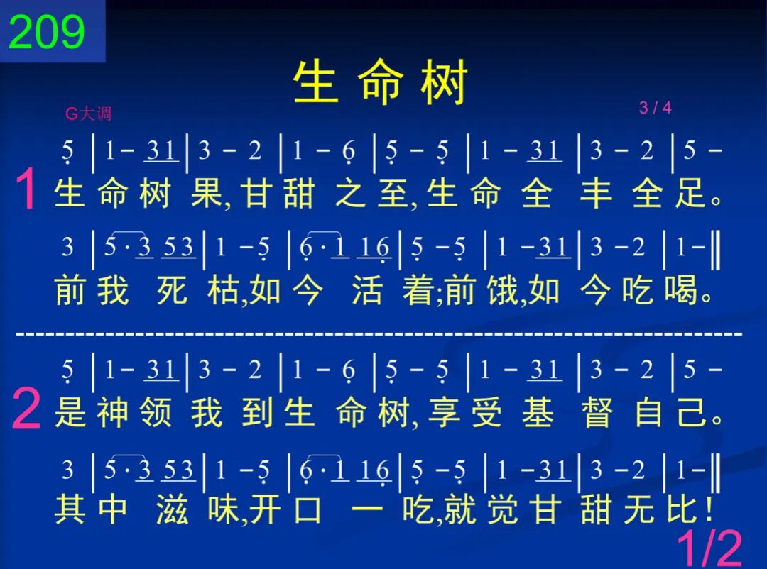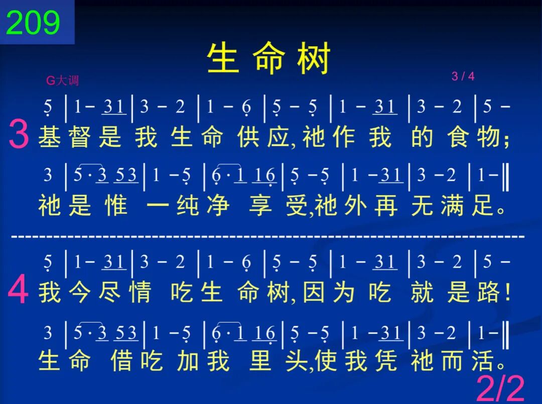 生命树果,甘甜之至,生命全丰全足。前我死枯,如今活着;前饿,如今吃喝。 二 是神领我到生命树,享受基督自己。其中滋味,开口一吃,就觉甘甜无比! 三 基督是我生命供应,祂作我的食物;祂是惟一纯净享受,祂外再无满足。 四 我今尽情吃生命树,因为吃就是路!生命藉吃加我里头,使我凭祂而活。