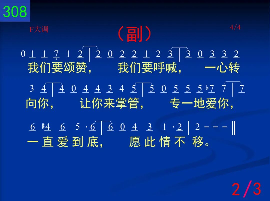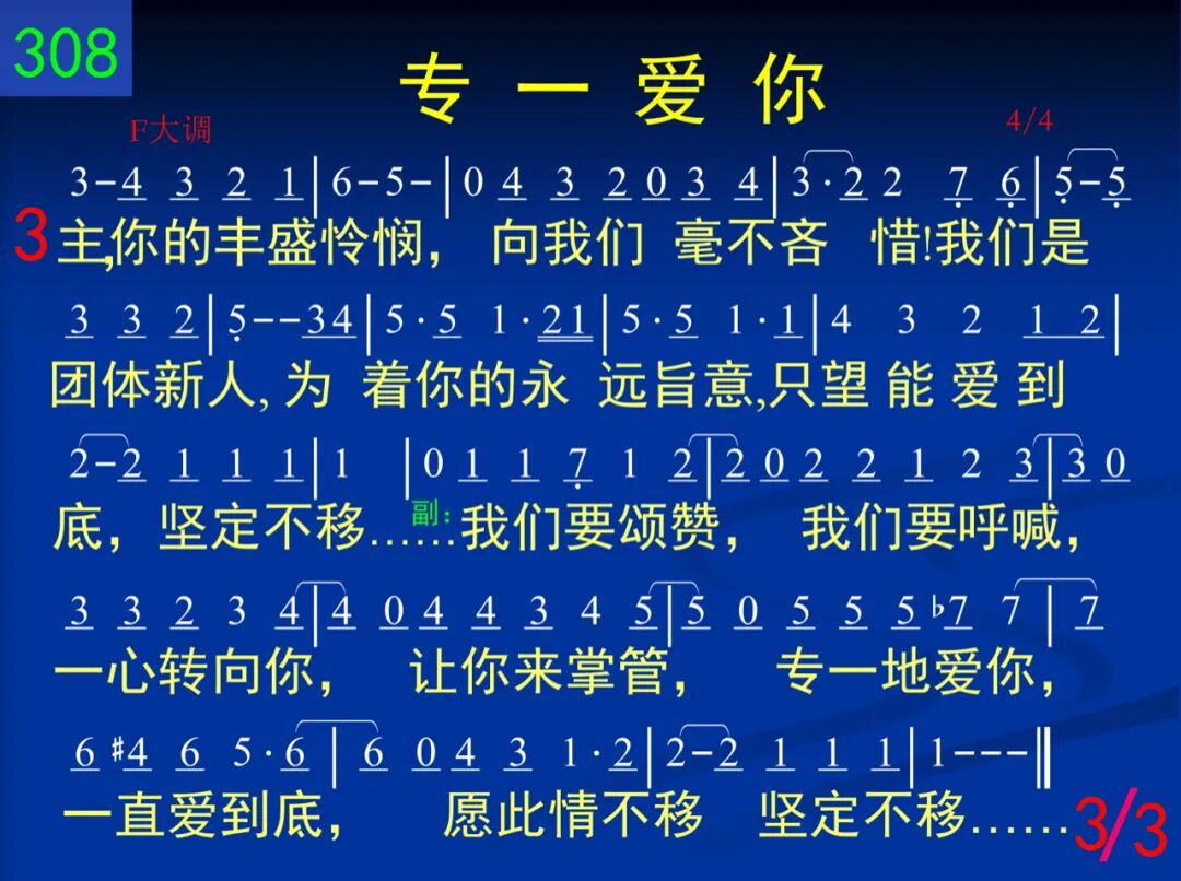 主,每代你有一人:如朋友,亚伯拉罕;呼喊者,如撒母耳;又如大卫,满了颂赞,但你要得一班。 二 主,我们巴望就是服事你的那一班;洗你脚,合你需要,使你舒畅,令你心欢,作你密友良伴,无所不谈… 我们要颂赞,我们要呼喊,一心转向你,让你来掌管,专一的爱你,一直爱到底,愿此情不移。 三 主,你的丰盛怜悯,向我们毫不吝惜!我们是团体新人,为着你的永远旨意,只望能爱到底,坚定不移…… 我们要颂赞,我们要呼喊,一心转向你,让你来掌管,专一的爱你,一直爱到底,愿此情不移。