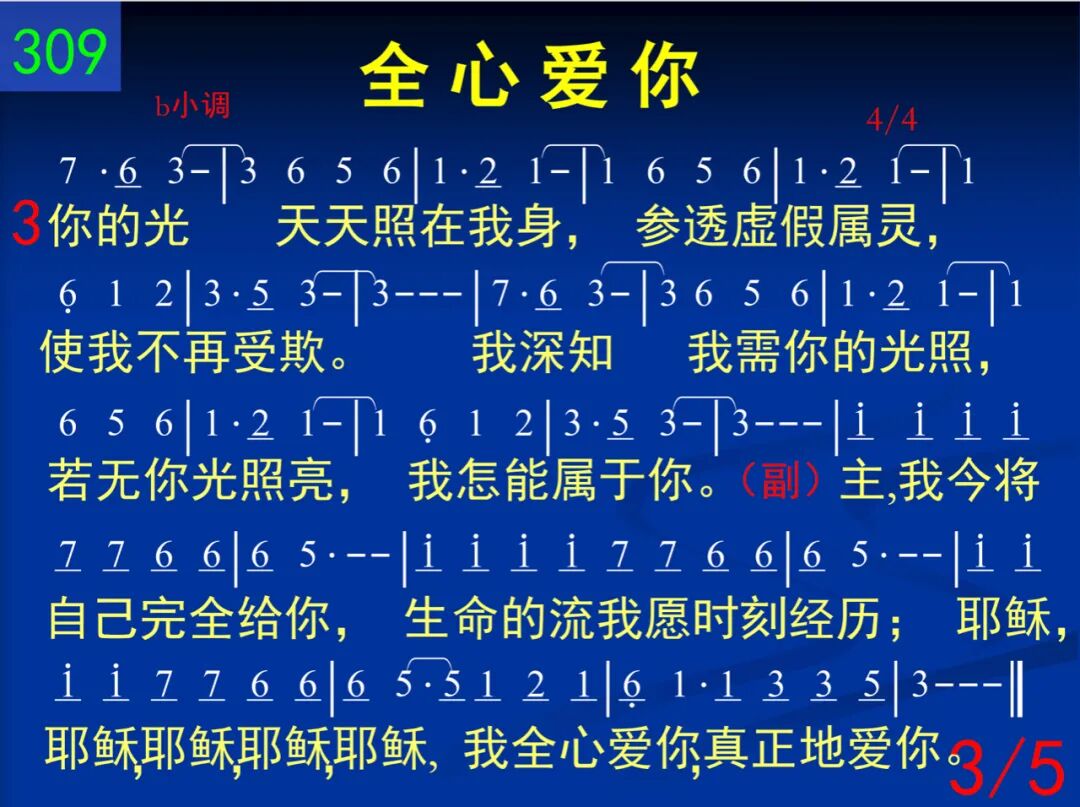 哦,我主!我将自己给你,你外我无出路,世界已经消逝。这世代都卧恶者手中,但我属我的父,祂爱供我所需。 主,我今将自己完全给你,生命的流我愿时刻经历;耶稣,耶稣,耶稣,耶稣,耶稣,我全心爱你,真正的爱你。 二 我羡慕你从我心流出,我心永远不能装你之外事物。我深处时刻向你呼求,满带饥渴羡慕,从我甜美流出。 主,我今将自己完全给你,生命的流我愿时刻经历;耶稣,耶稣,耶稣,耶稣,耶稣,我全心爱你,真正的爱你。 三 你的光天天照在我身,参透虚假属灵,使我不再受欺。我深知我需你的光照,若无你光照亮,我怎能属于你。 主,我今将自己完全给你,生命的流我愿时刻经历;耶稣,耶稣,耶稣,耶稣,耶稣,我全心爱你,真正的爱你。 四 洁净我,不让一罪存留,愿我天天改变,让你生命有路;我求你赦免我罪软弱,使我里外清洁,活水涌流无阻。 主,我今将自己完全给你,生命的流我愿时刻经历;耶稣,耶稣,耶稣,耶稣,耶稣,我全心爱你,真正的爱你。 五 何喜乐,享受生命平安,有主甜美同在,死亡毫无踪迹;何喜乐,生命交通甜蜜,我觉即使在天,也不能够相匹。 主,我今将自己完全给你,生命的流使我赞美不已;耶稣,耶稣,耶稣,耶稣,耶稣,我全心爱你,真正的爱你。