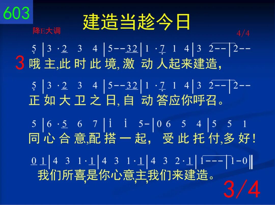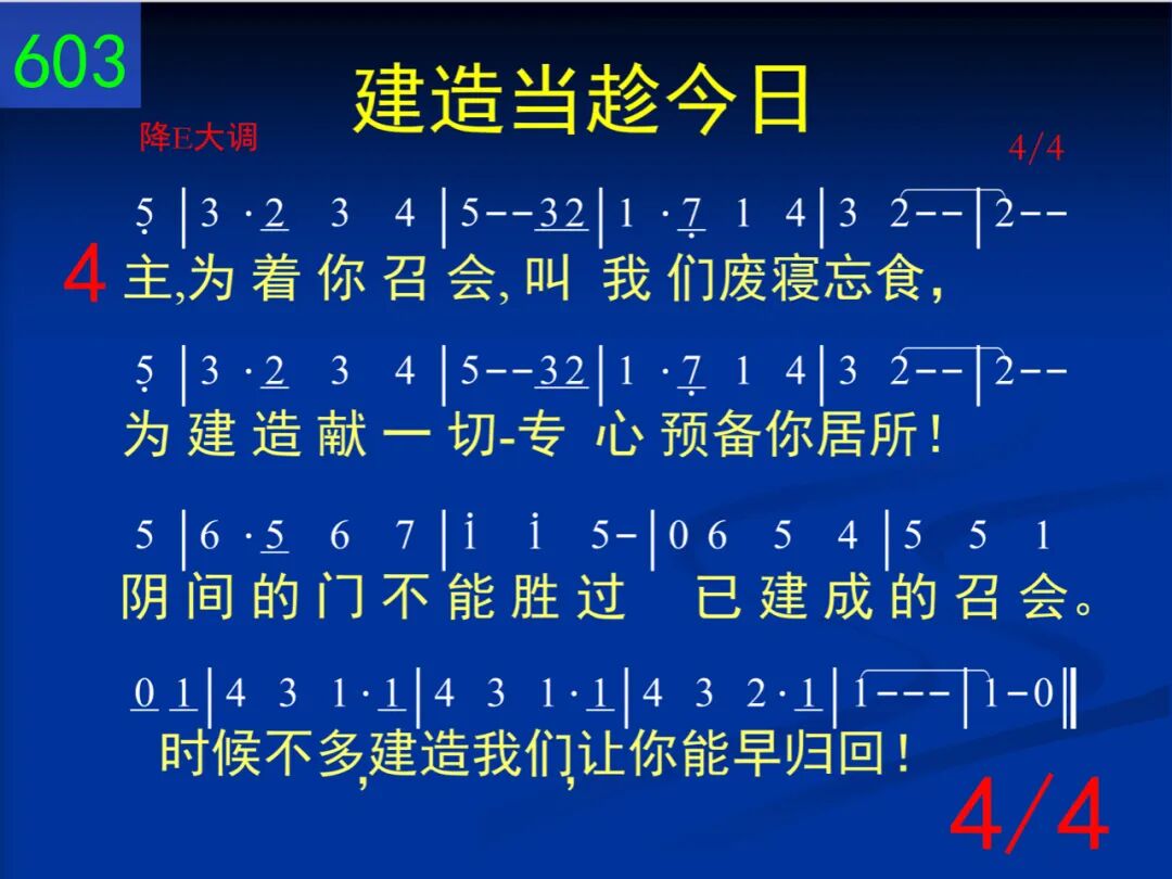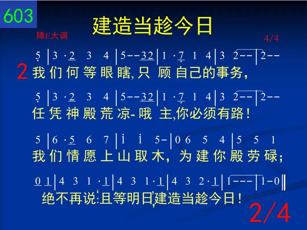 记得大卫起誓:“我不进我的帐幕,不上我的床榻,不容我打盹闭目,直等到我为耶和华,寻得安息之处。”全能的神巴望有家使属祂者可住。 二 我们何等眼瞎,只顾自己的事务,任凭神殿荒凉─哦主,你必须有路!我们情愿上山取木,为建你殿劳碌;绝不再说:“且等明日,”建造当趁今日! 三 哦主,此时此境,激动人起来建造,正如大卫之日,自动答应你呼召。同心合意,配搭一起,受此托付,多好!我们所喜,是你心意,主,我们来建造。 四 主,为着你召会,叫我们废寝忘食,为建造献一切─专心预备你居所!阴间的门不能胜过已建成的召会。时候不多,建造我们,让你能早归回!(重复最后两行)