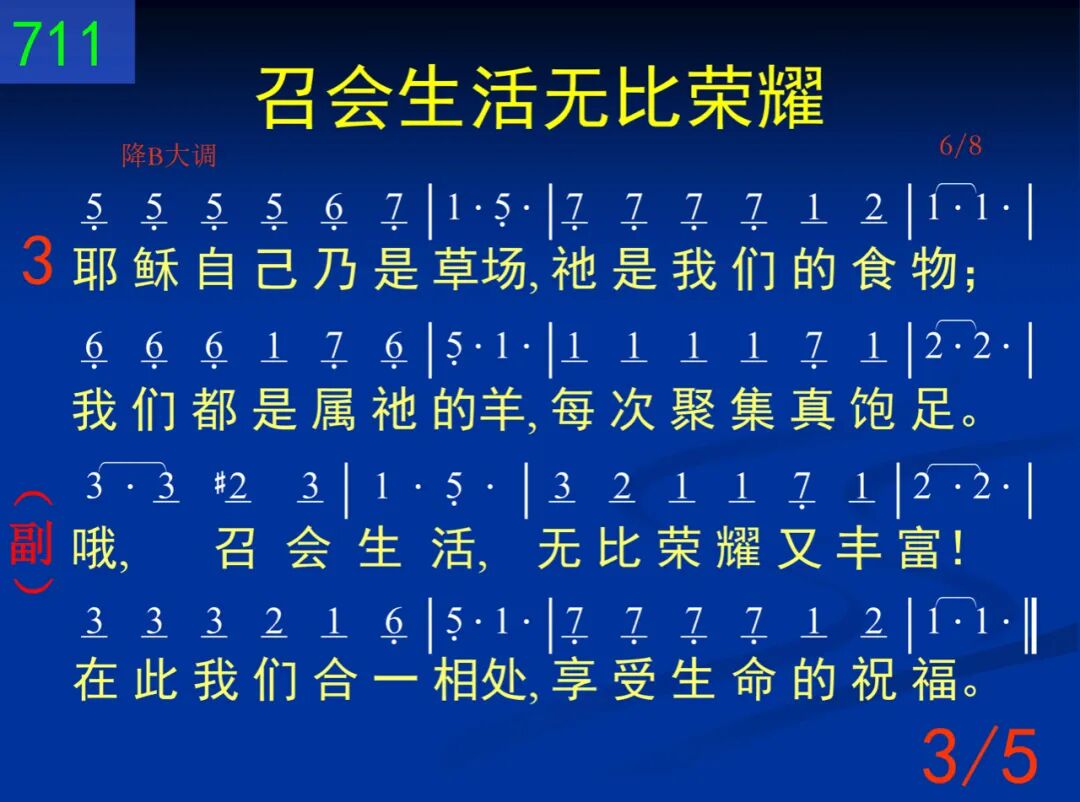 耶稣是那奇妙牧人,带领我们出羊圈。肥沃草地,广阔无边,我们处身在其间! 哦,召会生活,无比荣耀又丰富!在此我们合一相处,享受生命的祝福。 二 身处异地,饥寒交迫,是祂来把我找着;祂带我们进入美地,灵里舒适真无比! 哦,召会生活,无比荣耀又丰富!在此我们合一相处,享受生命的祝福。 三 耶稣自己乃是草场,祂是我们的食物;我们都是属祂的羊,每次聚集真饱足。 哦,召会生活,无比荣耀又丰富!在此我们合一相处,享受生命的祝福。 四 我们今正住于高山,新鲜甘露何舒适!所有干渴一去不回,祂是常新的活水。 哦,召会生活,无比荣耀又丰富!在此我们合一相处,享受生命的祝福。 五 基督是我们的享受,可以高枕而无忧;我们在此平安稳妥,蒙祂同在的保守。 哦,召会生活,无比荣耀又丰富!在此我们合一相处,享受生命的祝福。