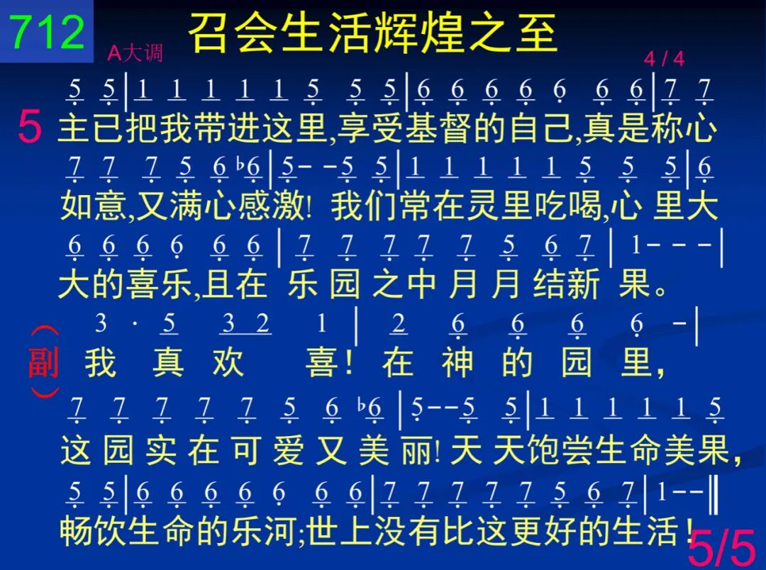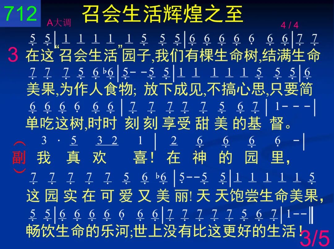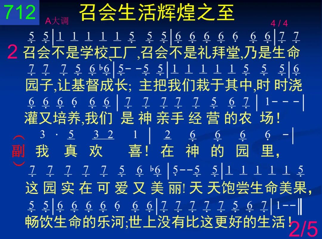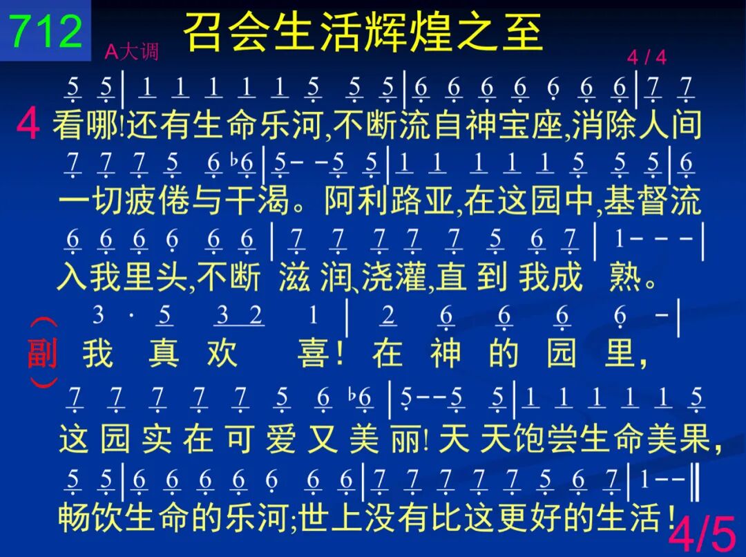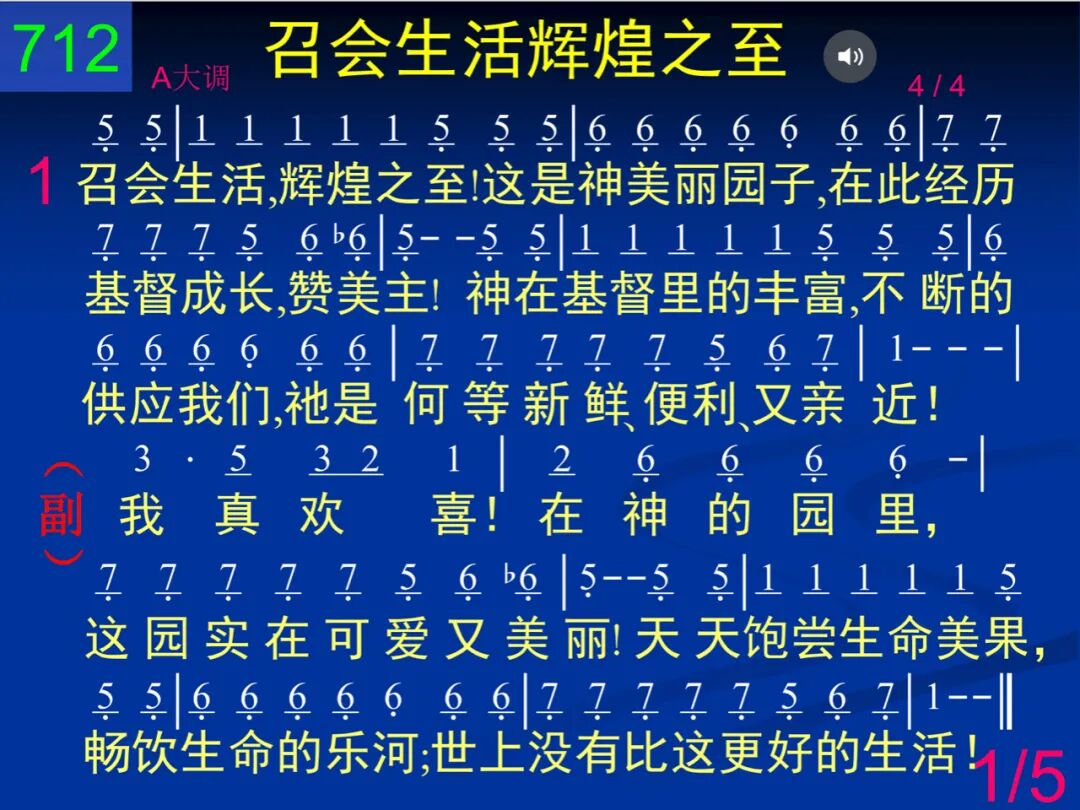 召会生活,辉煌之至!这是神美丽园子,在此经历基督成长,赞美主!神在基督里的丰富,不断的供应我们,祂是何等新鲜、便利、又亲近! 我真欢喜!在神的园里,这园实在可爱又美丽!天天饱尝生命美果,畅饮生命的乐河;世上没有比这更好的生活! 二 召会不是学校、工厂,召会不是礼拜堂,乃是生命园子,让基督成长;主把我们栽于其中,时时浇灌又培养,我们是神亲手经营的农场! 我真欢喜!在神的园里,这园实在可爱又美丽!天天饱尝生命美果,畅饮生命的乐河;世上没有比这更好的生活! 三 在这“召会生活”园子,我们有棵生命树,结满生命美果,为作人食物;放下成见,不搞心思,只要简单吃这树,时时刻刻享受甜美的基督。 我真欢喜!在神的园里,这园实在可爱又美丽!天天饱尝生命美果,畅饮生命的乐河;世上没有比这更好的生活! 四 看哪!还有生命乐河,不断流自神宝座,消除人间一切疲倦与干渴。阿利路亚,在这园中,基督流入我里头,不断滋润、浇灌,直到我成熟。 我真欢喜!在神的园里,这园实在可爱又美丽!天天饱尝生命美果,畅饮生命的乐河;世上没有比这更好的生活! 五 主已把我带进这里,享受基督的自己,真是称心如意,又满心感激!我们常在灵里吃喝,心里大大的喜乐,且在乐园之中月月结新果。 我真欢喜!在神的园里,这园实在可爱又美丽!天天饱尝生命美果,畅饮生命的乐河;世上没有比这更好的生活!
